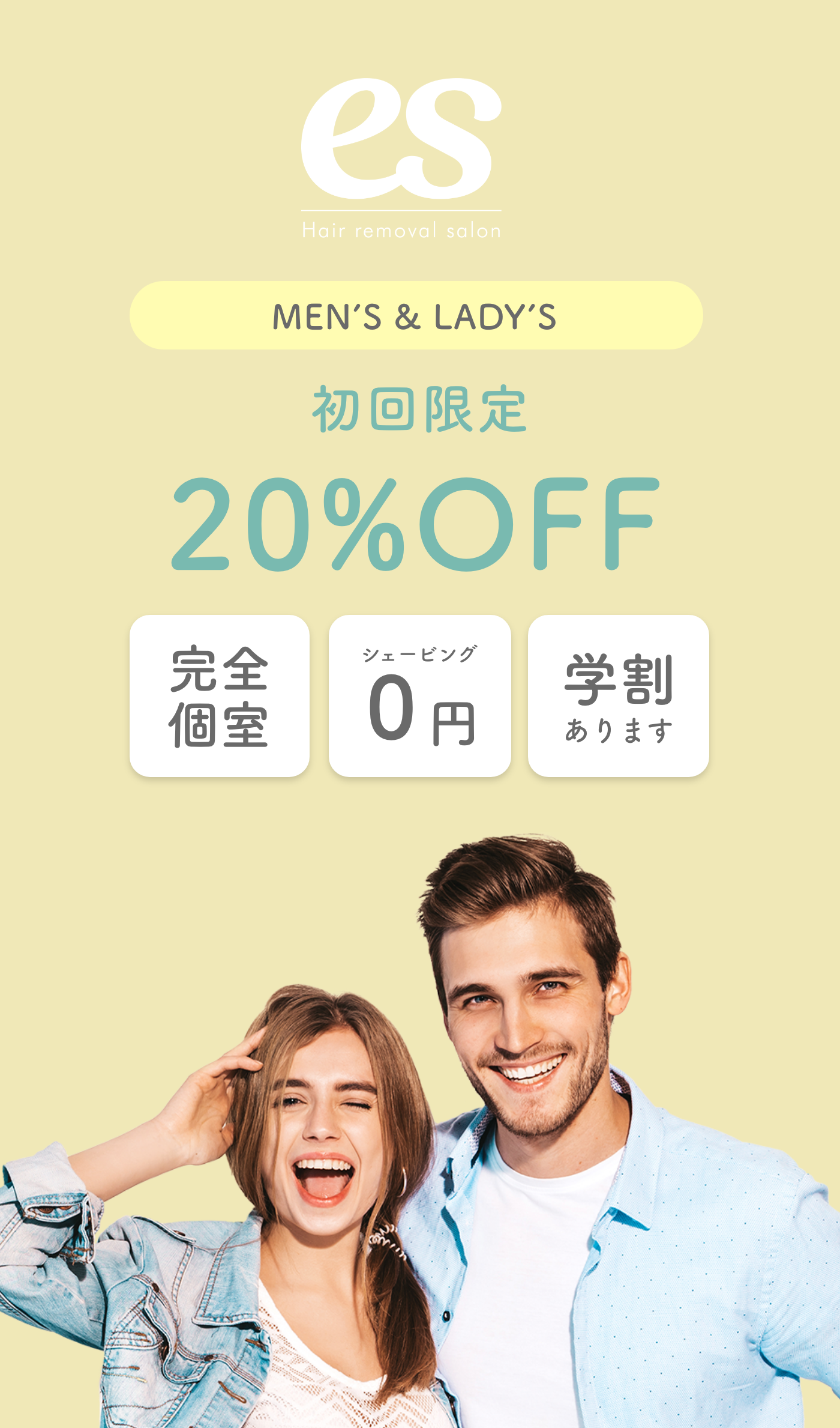 初めは男性の方からスタートした脱毛メニューですが、お客様からのご紹介で今では、多くの女性の方にもご来店いただけるようになりました。