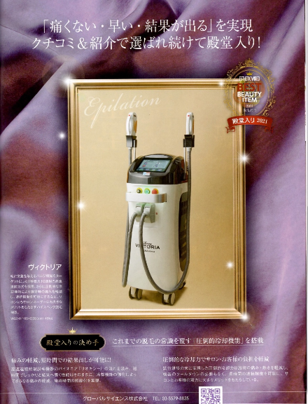 日本初の殿堂入りヴィクトリア脱毛機を採用。